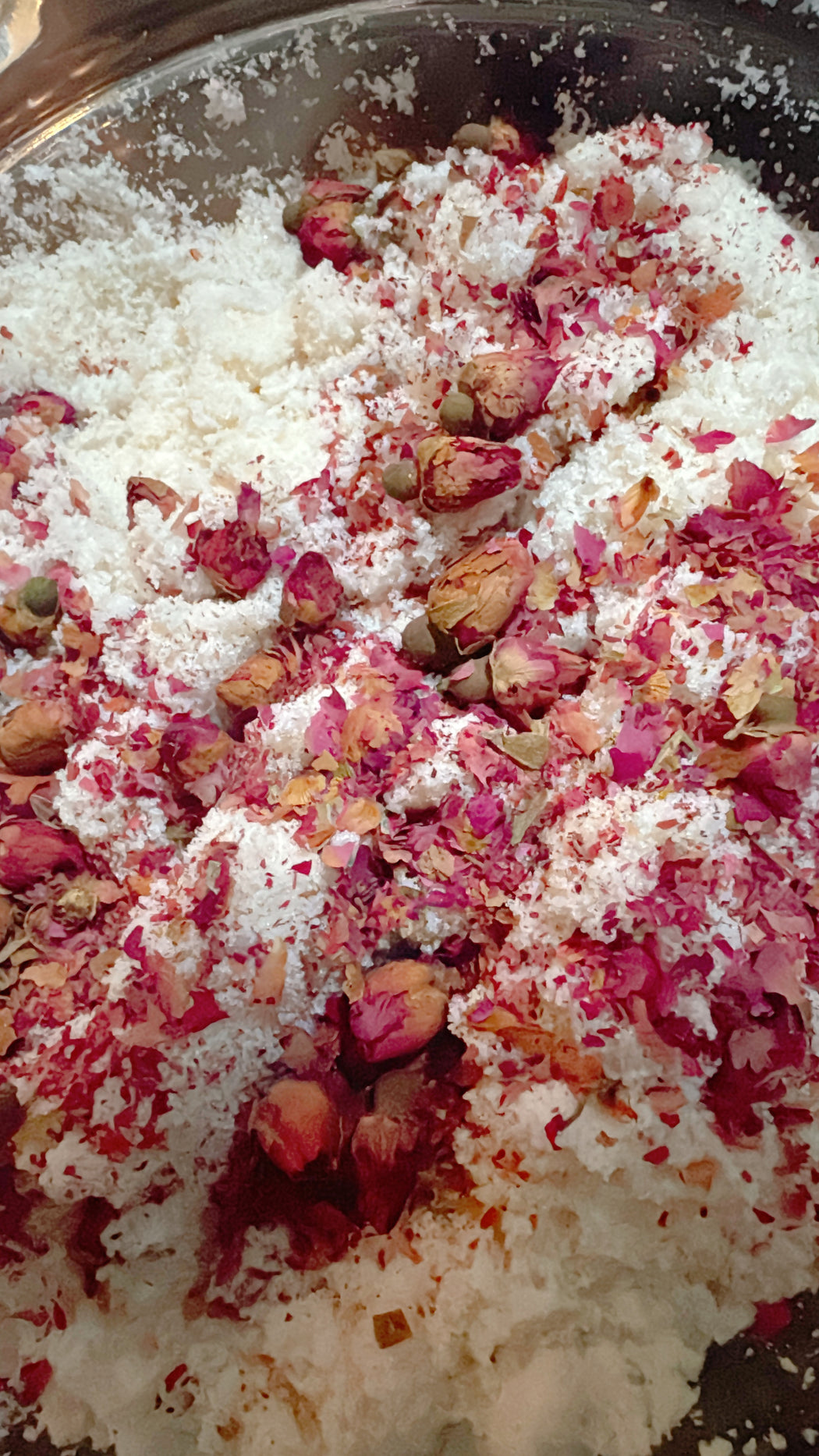 ローズピンクバッズを入れて華やかに。